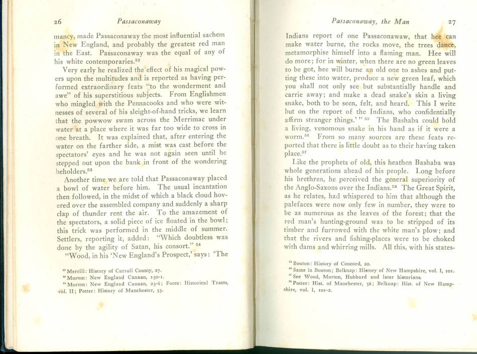 magic tricks or that the great Passaconaway was, "... in consort with the
