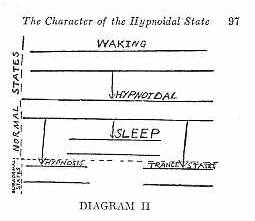 The relation of the hypnoidal state to waking, sleep, hypnosis, and other subconscious states may be represented by the diagram on following page.