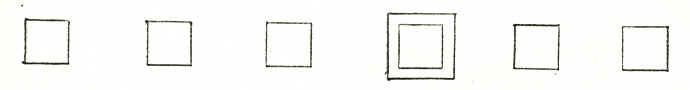 4. COLOUR VERBALLY SUGGESTED.―One of the coloured squares was shown to the subject, who had to determine its colour. This was not an easy task, as the subject had to tell the constituents of the colour, and give the precise name of it. The subject usually kept the coloured square in his hand, and spoke about it for more than a minute. In ease he did not succeed, I told him the name of the colour. Then the square was replaced in the series, and the experiment proper began. 5. PLACE VERBALLY SUGGESTED.―The place of one of the coloured squares was suggested by calling out a number during the removal of the cover and the set of choice, as, for instance, "Three!" meaning the third in the row beginning from the left hand. In order that the subject should understand the number suggested and get used to this mode of counting, I asked of him in other suggestion experiments that, after having chosen a coloured square, he should also tell its place, counting from left to right. 6. ENVIRONMENT.―One of the six coloured squares was put on a larger square of differently coloured paper. A fringe environing the square was thus formed: