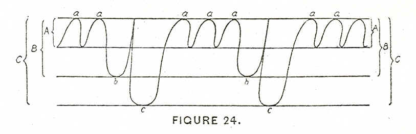 Let A,A (Figure 21) represent the content of the stream of the melancholic waking consciousness; the waves a,a represent mental states of the upper stream. Although the waves and the states they designate are not the same, still for the sake of clearness and precision they are termed the a,a waves and the designated states the a,a states.